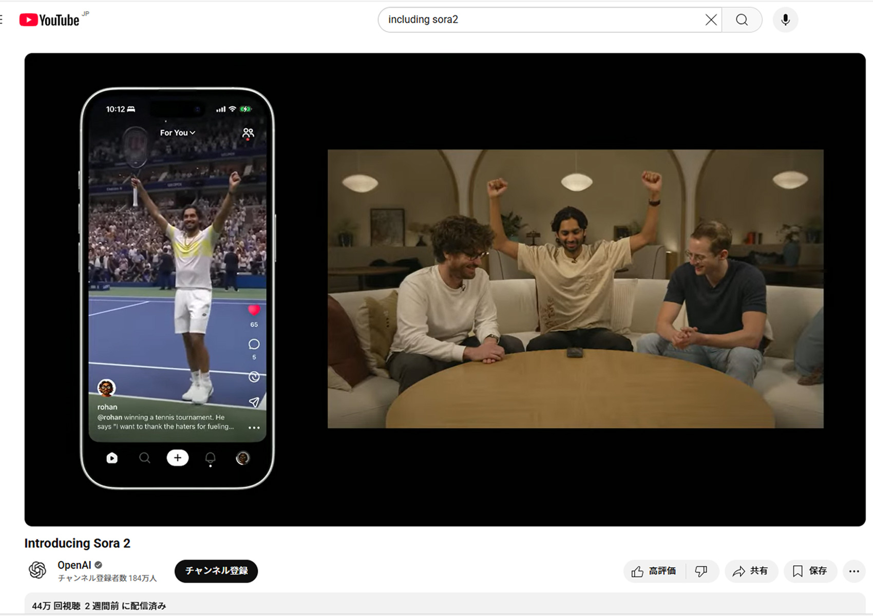 前回、動画生成AI「Sora」についてのコラムを書きましたが、その約1ヶ月後、突如としてOpenAIから「Sora2」の発表がありました。